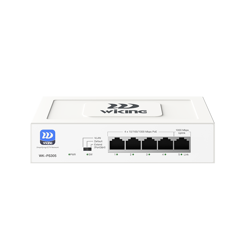 5-портов PoE мрежов комутатор; 4 х 10/100/1000Mbps Gigabit порта + 1 x 10/100/1000Mbps Gigabit Uplink порт; PoE+ поддръжка 30W IEEE 802.3af/at (Port 1~Port 4); PoE watchdog функция; общ PoE бюджет 45W; пренос на Ethernet сигнал до 100 м; "Extended" режим, осигуряващ работа на до 250 м (10Mbps/Cat5e); Функции: VLAN/Port isolation; 220Vac/55W; fanless метален корпус; размери 160х90х35 мм